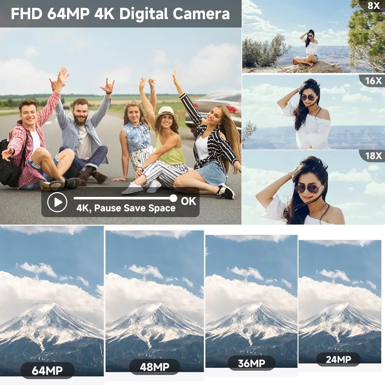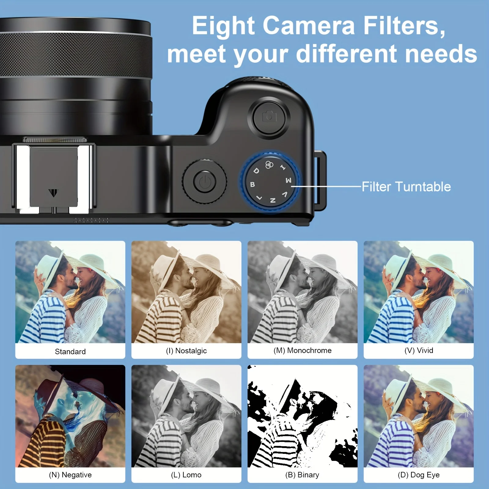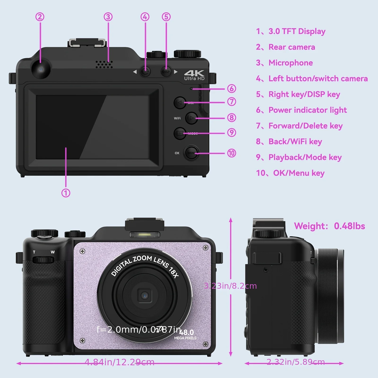 18X 48MP Digital Camera For Photography Front Rear Dual Lens Selfie Vlog Camera 4K Camcorder Live Stream WIFI Webcam Face Detect