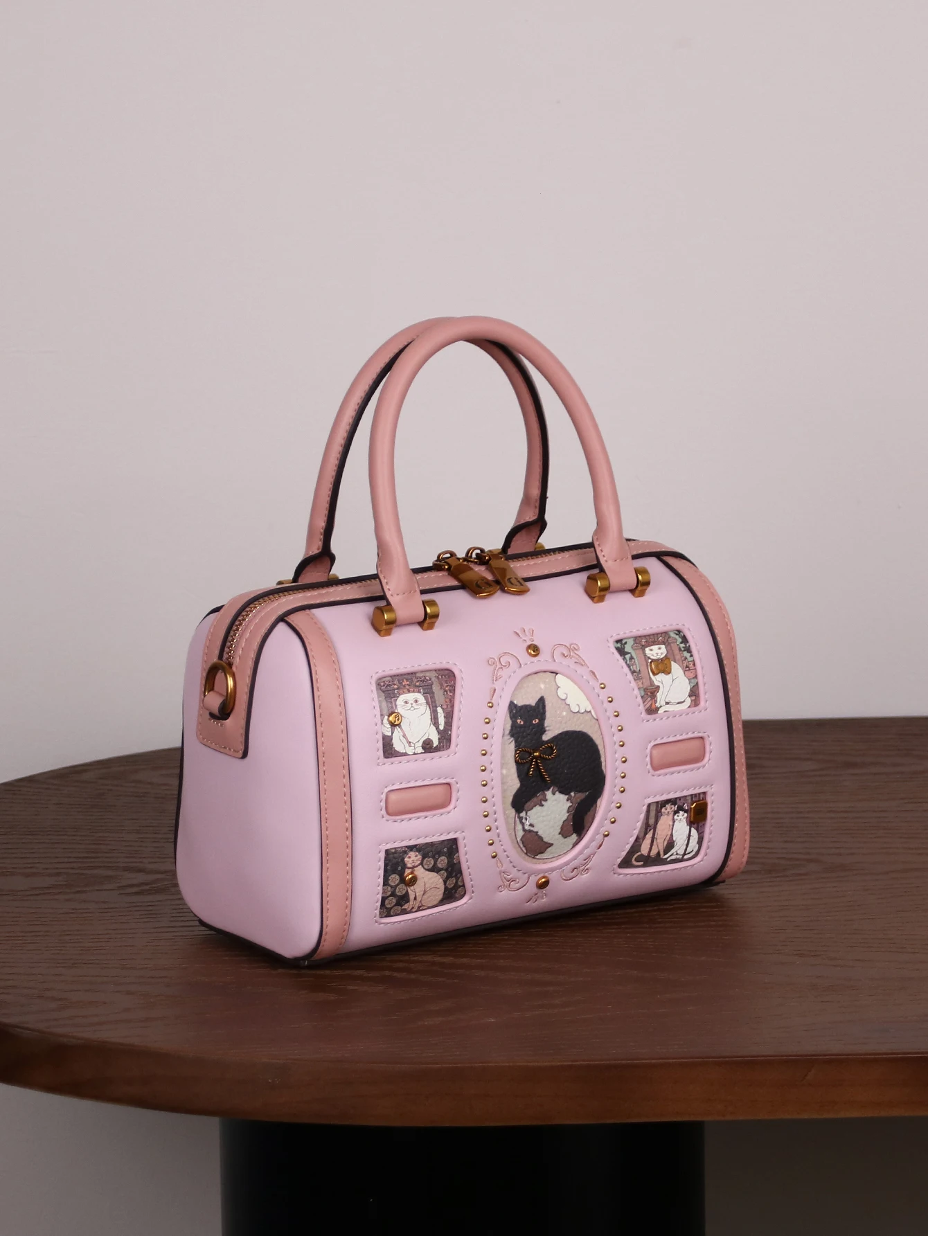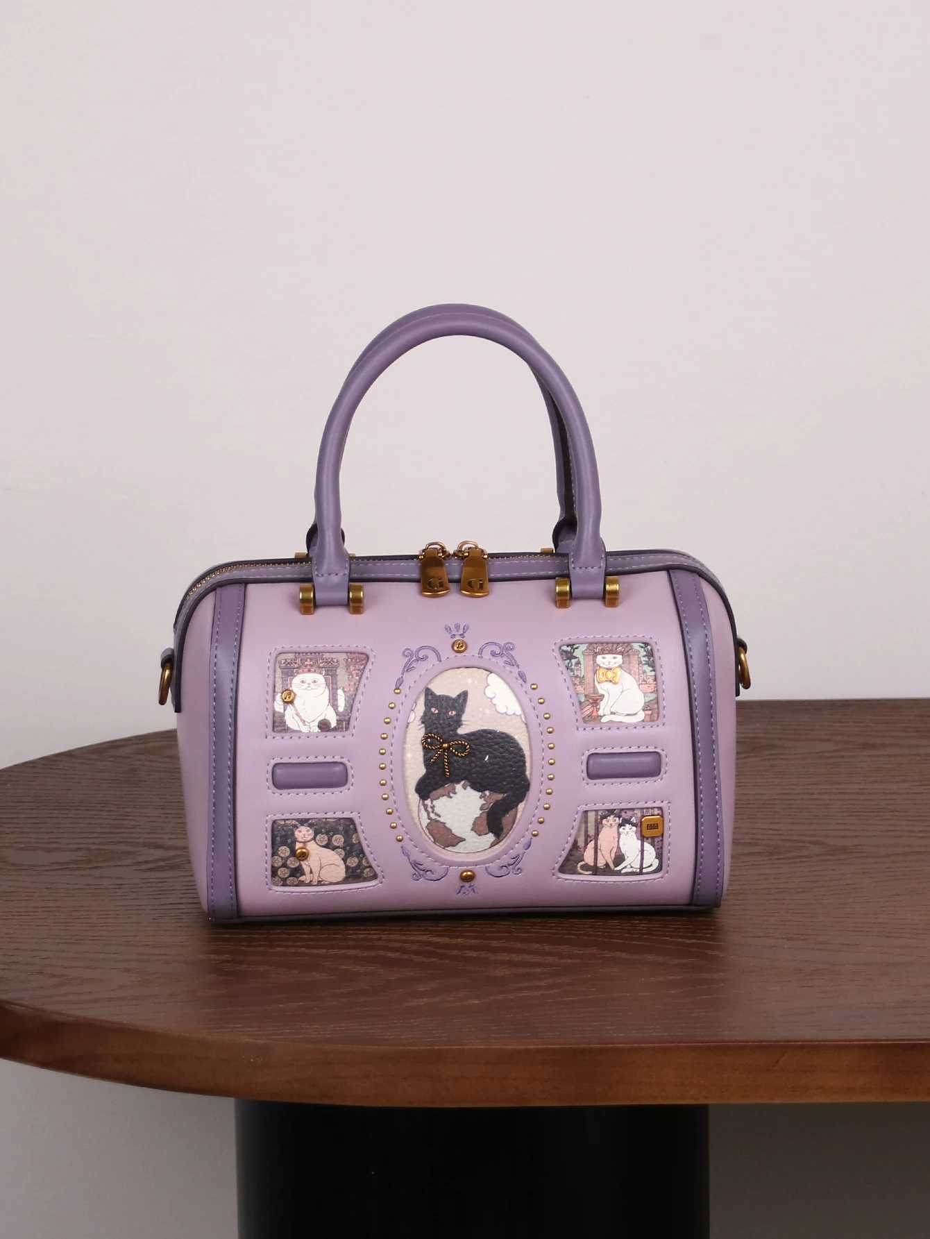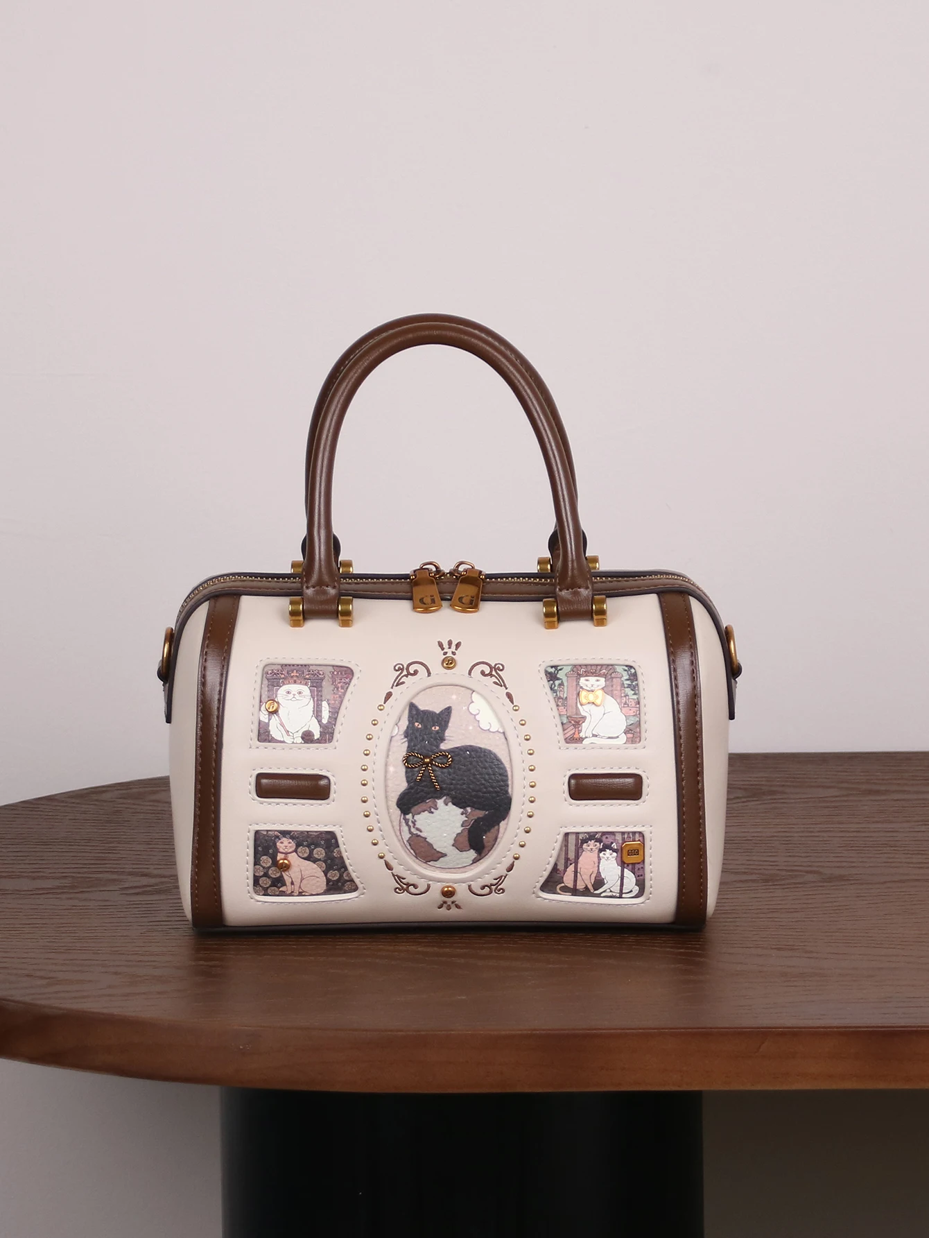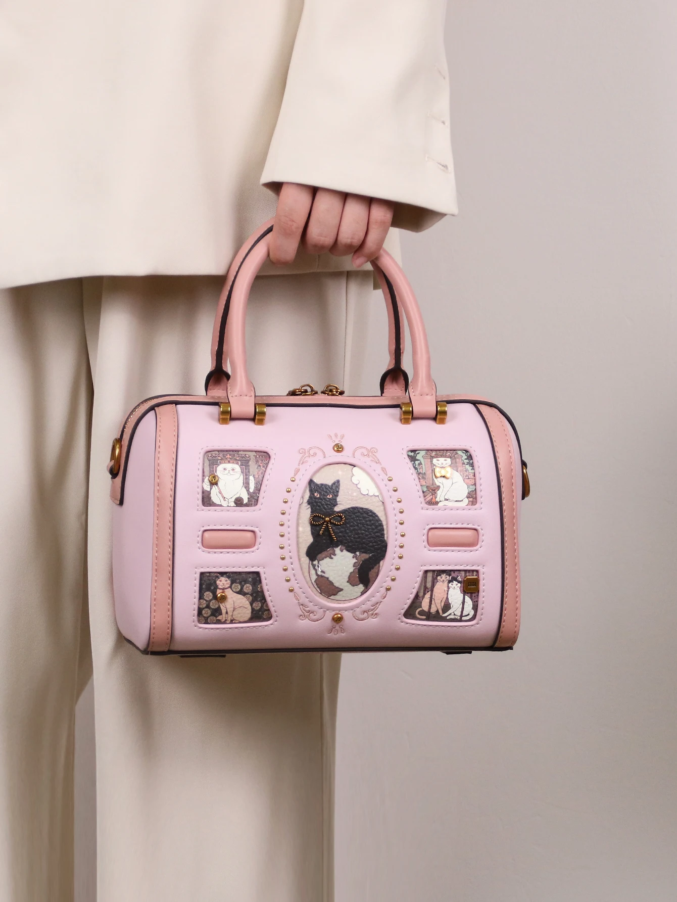 2025 niche design fashion new high-quality handbag retro rivet frame cute cat Boston pillow bag commuter large capacity luxury s