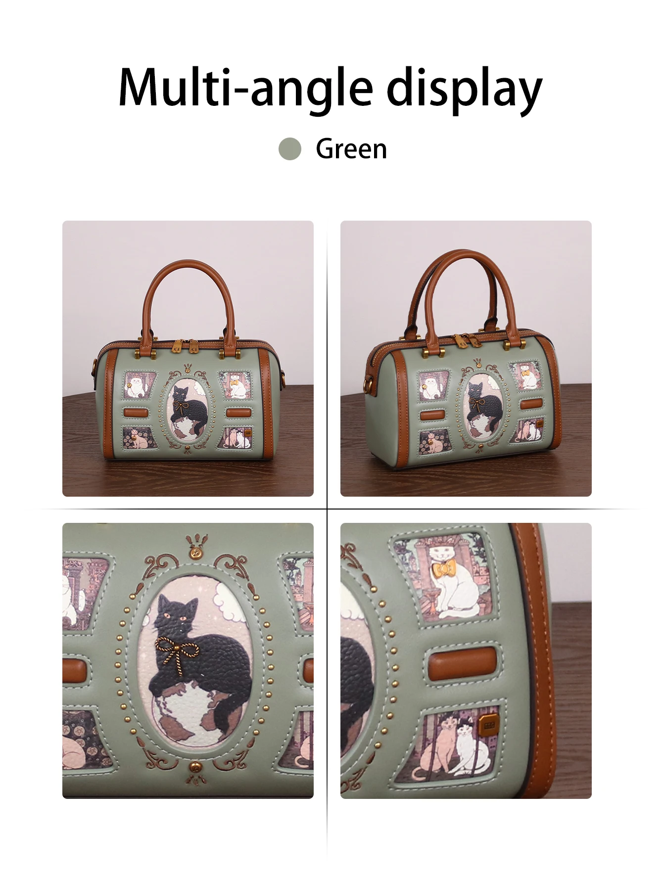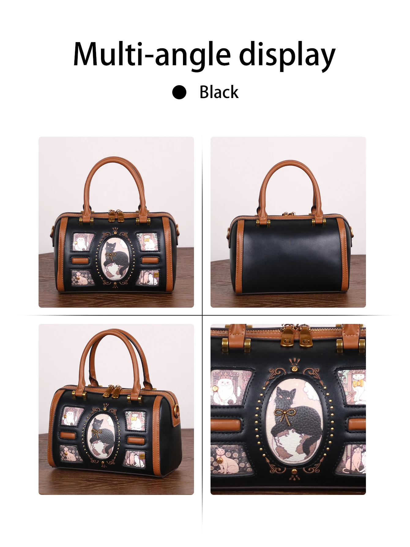Be the first to review “2025 niche design fashion new high-quality handbag retro rivet frame cute cat Boston pillow bag commuter large capacity luxury s”