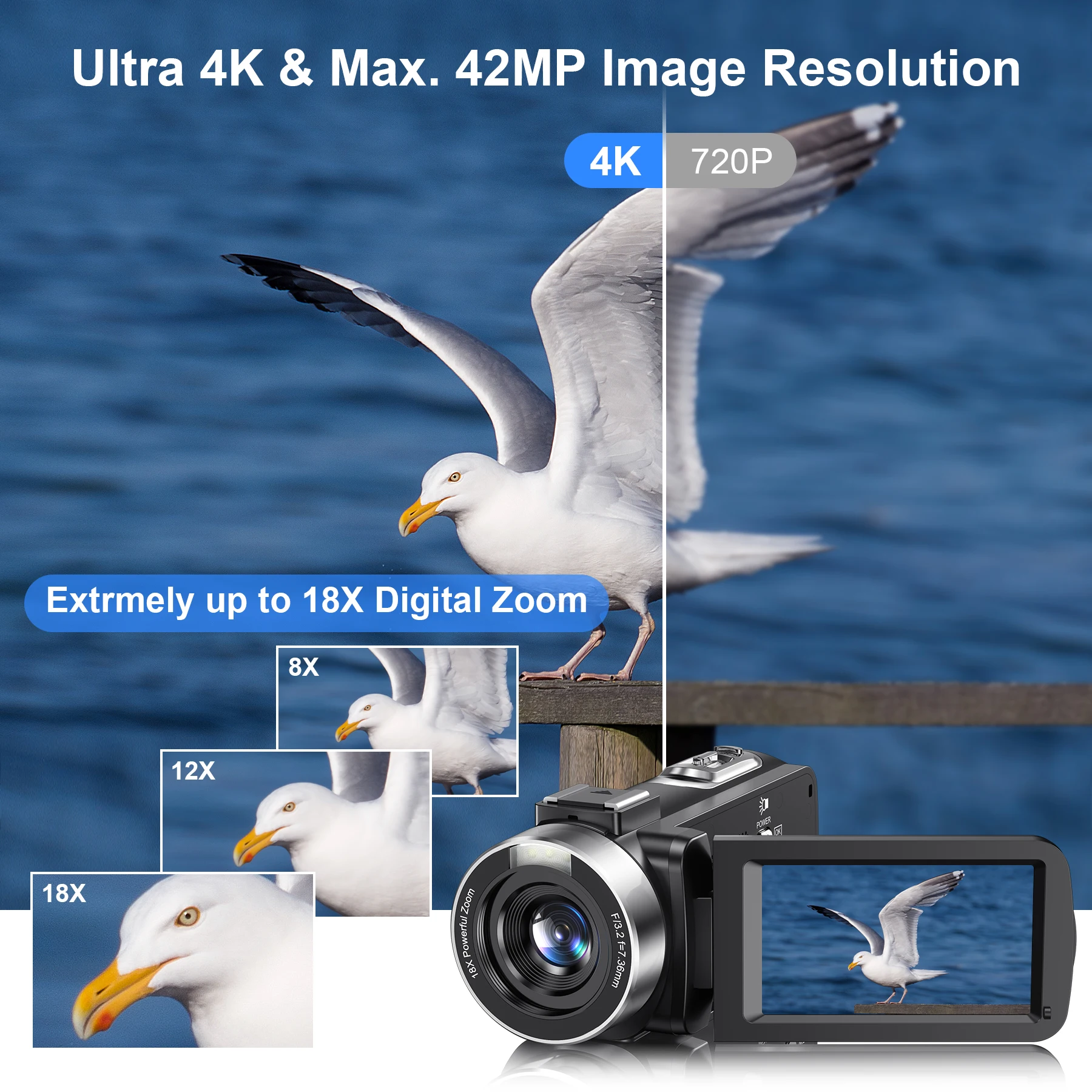4K Portable Digital photography Cameras 2 in1 Photo Video Record DV Travel Video Camera 18X Zoom 3” Rotatable Screen With Flash