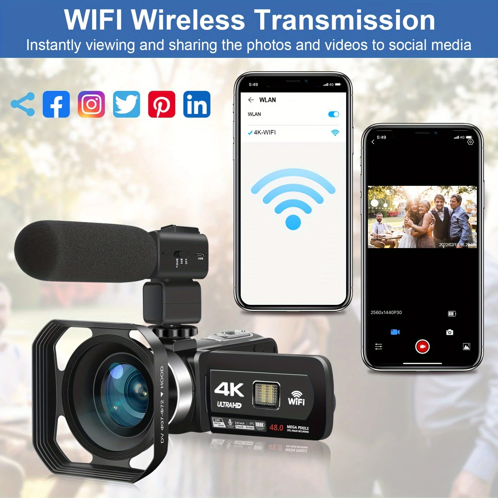 Resolution: 4k / 30fps, 2k / 30fps, fhd / 30fps, hd / 30fps, hd / 120fps, fhd / 60fps