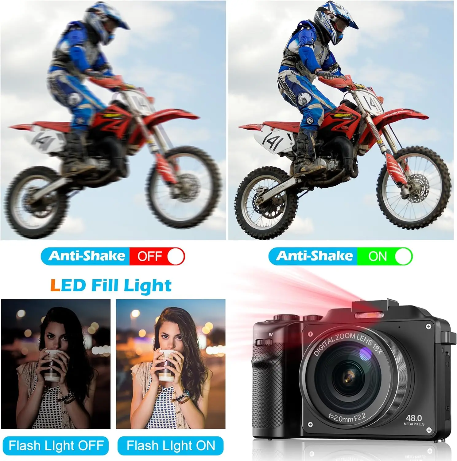 56MP Digital Camera For Photography Front Rear Dual Lens Selfie Vintage 4K Camcorder 18XYoutube Livestream WIFI Webcam DIY Frame