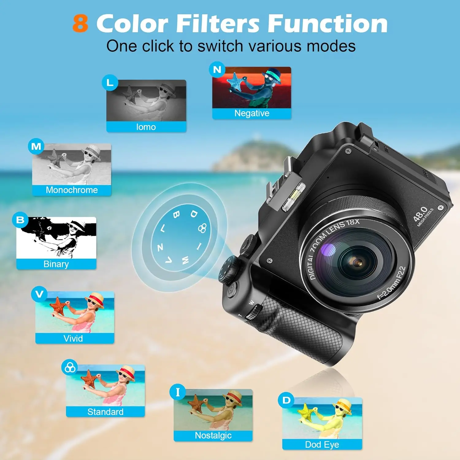 2.The digital camera supports U3/Class 10 level or higher TF card and up to 128G