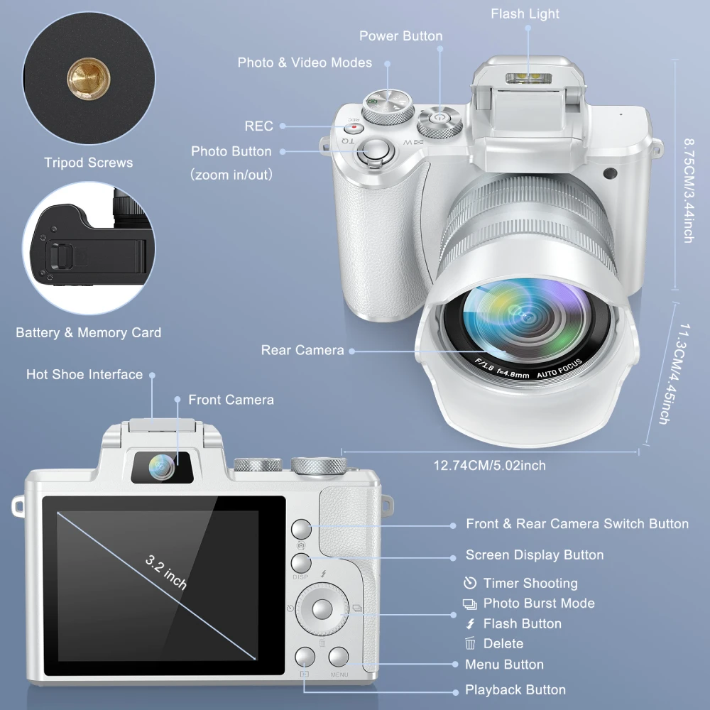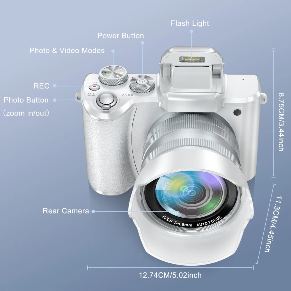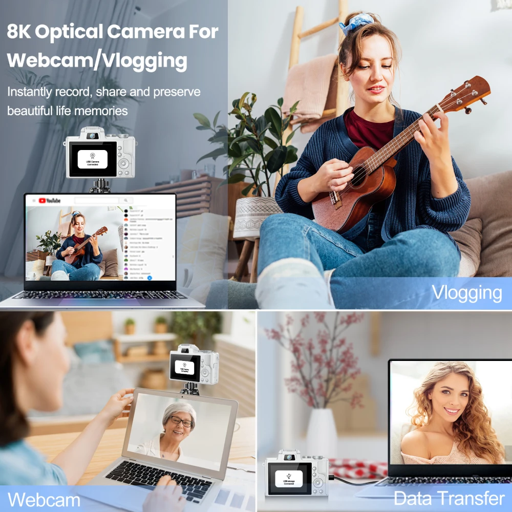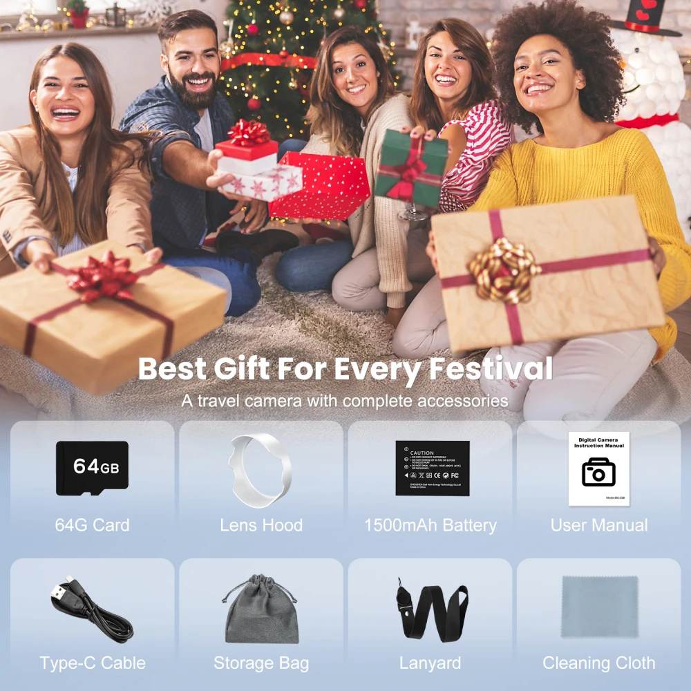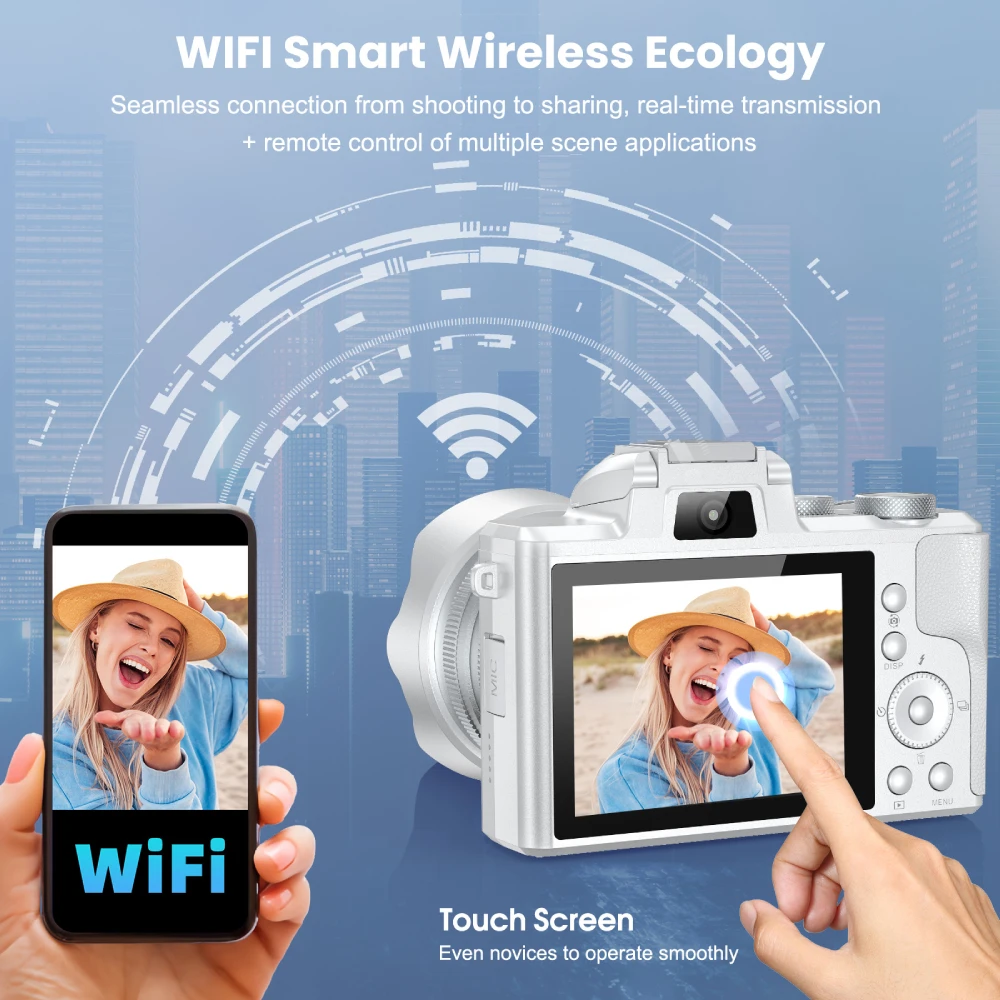 【WIFI SMART WIRELESS ECOLOGY】Seamless connection from shooting to sharing, real-time transmission + remote control of multiple scene applications. Install iSmart DV2 APP on your phone to remotely control the camera to easily take group jumping photos. WiFi direct transmission speed is 2 times faster than traditional cameras. When you are having a picnic in the park, your phone can receive photos in real time and share them on social platforms. Type-C webcam mode connects to a computer to achieve video conferencing and live streaming.