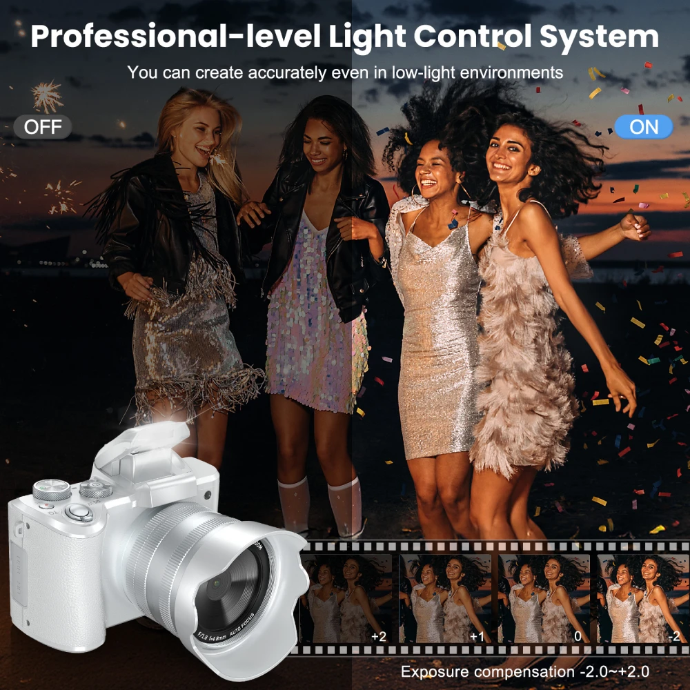 【PROFESSIONAL-LEVEL LIGHT CONTROL SYSTEM】Accurate creation is possible in low-light environments. The LED flash is natural and not dazzling, and the skin texture of the portrait taken by candlelight dinner is real, without overexposure and red eyes. The hot shoe supports external microphones to reduce environmental noise and clearly record travel vlog commentary. Built-in focus assist light, accurate focus on the details of cultural relics in low-light environments in museums.