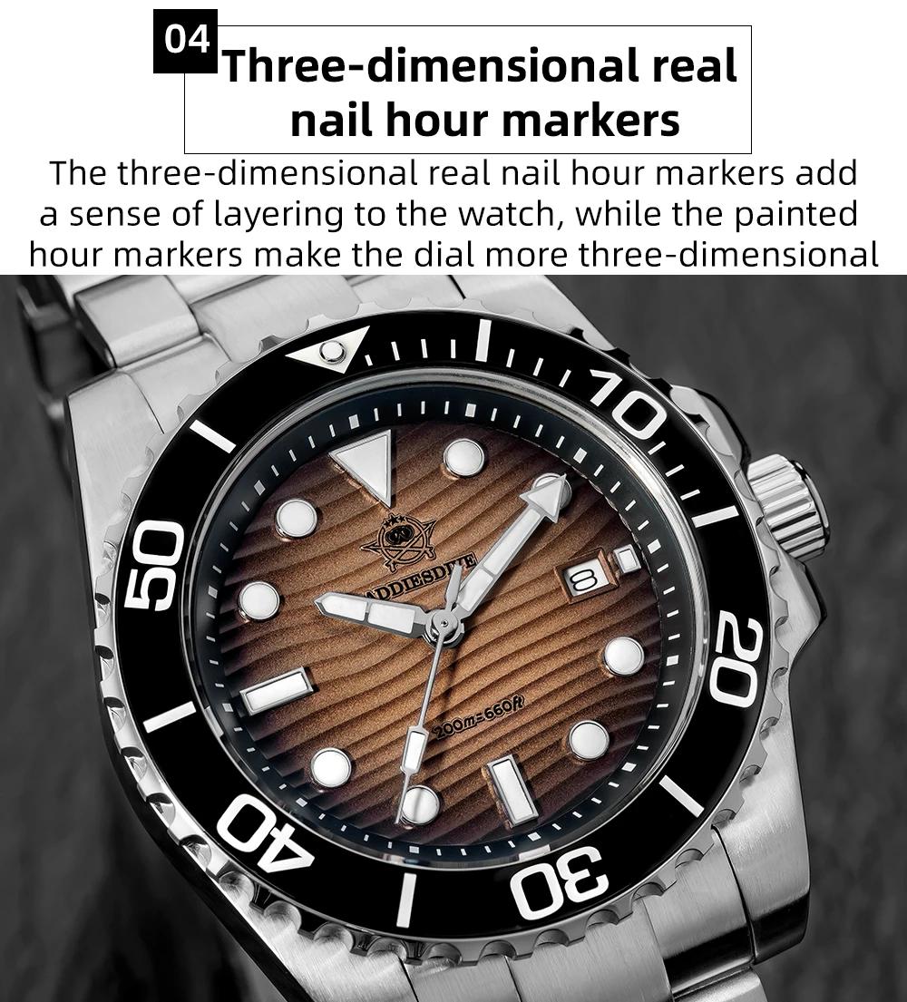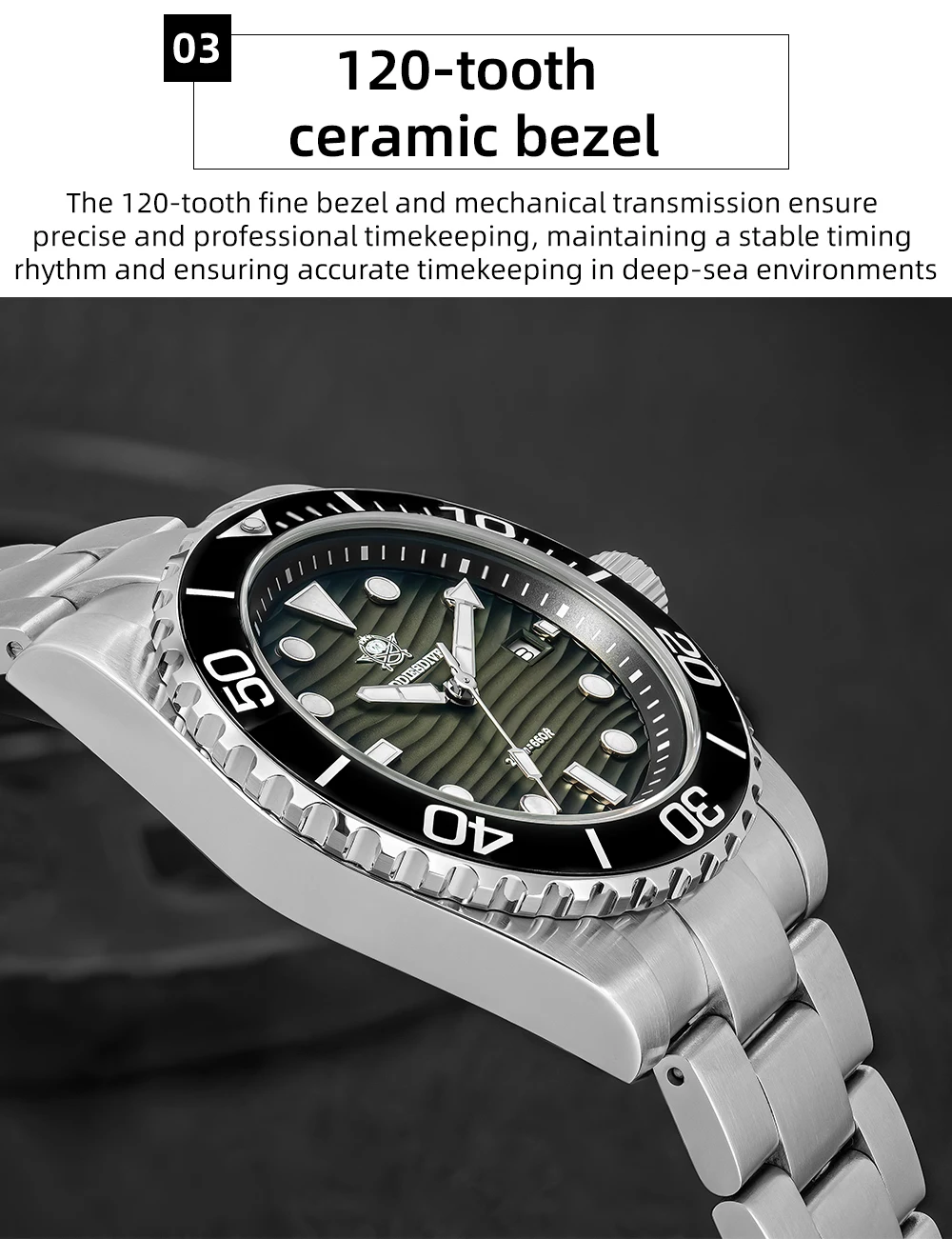 Characteristics of the bezel: 120 tooth noise, unidirectional rotation