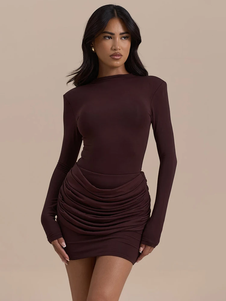 Blifanbo Ruched Long Sleeve Mini Dress Women Autumn Winter O Neck Slim Sexy Club Party Dress Patchwork Fashion Elegant Vestido