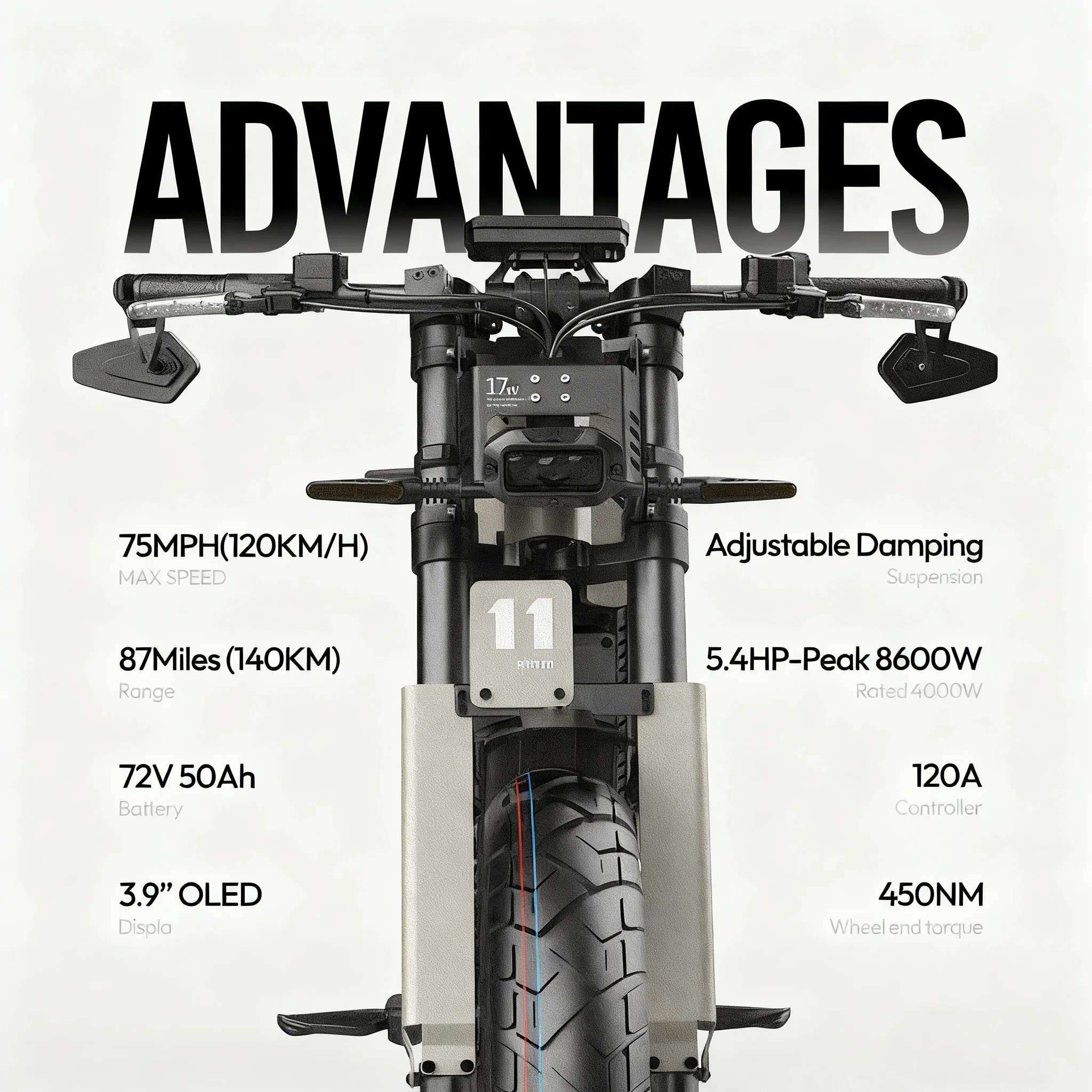 1.Unmatched Power: Equipped with an impressive 8000W brushless motor, the COSWHEEL Electric Off-Road Motorcycle delivers unparalleled performance and acceleration for an electrifying off-road experience.