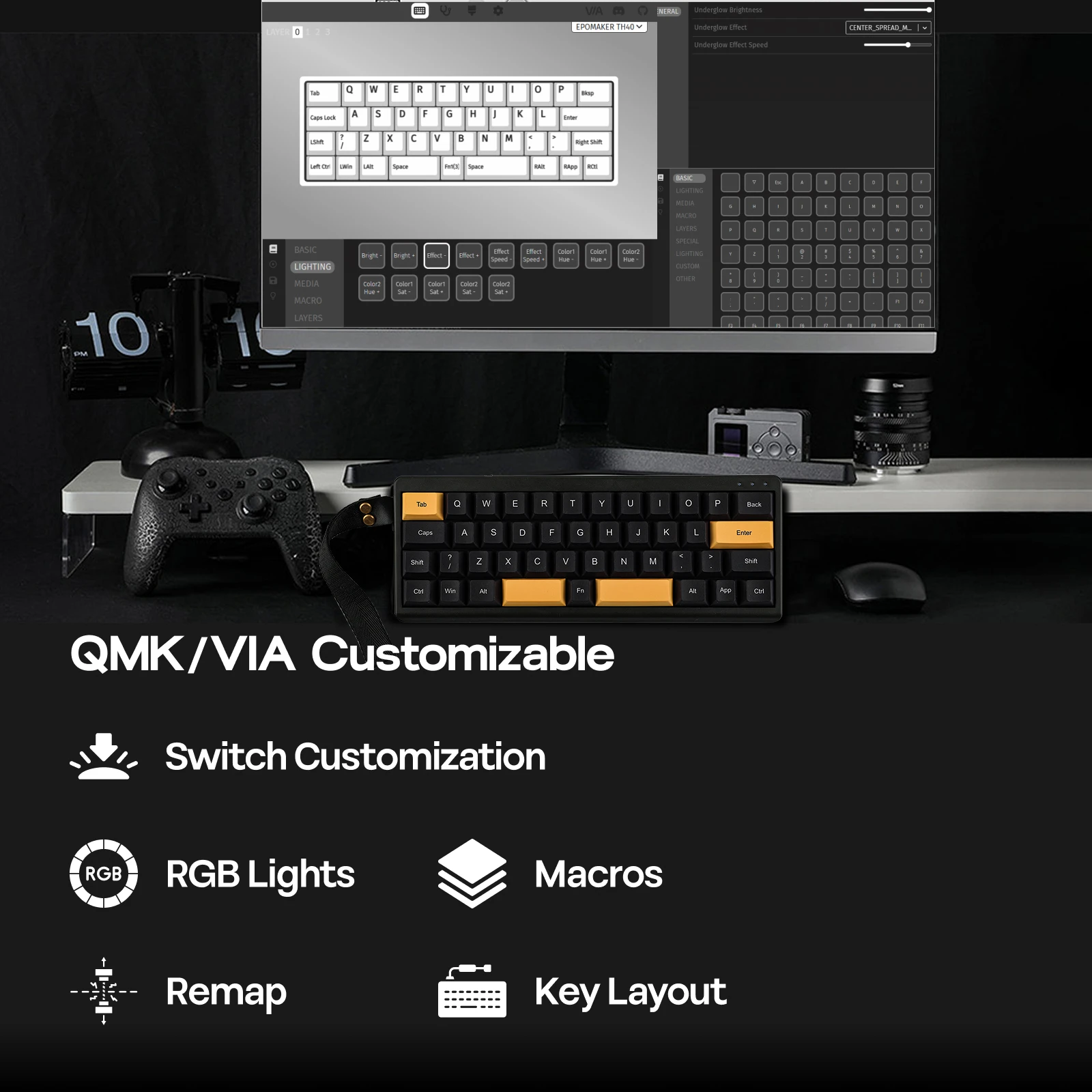 The EPOMAKER TH40 combines compact design, programmability, versatile connectivity, and dynamic RGB lighting for an enhanced typing experience.