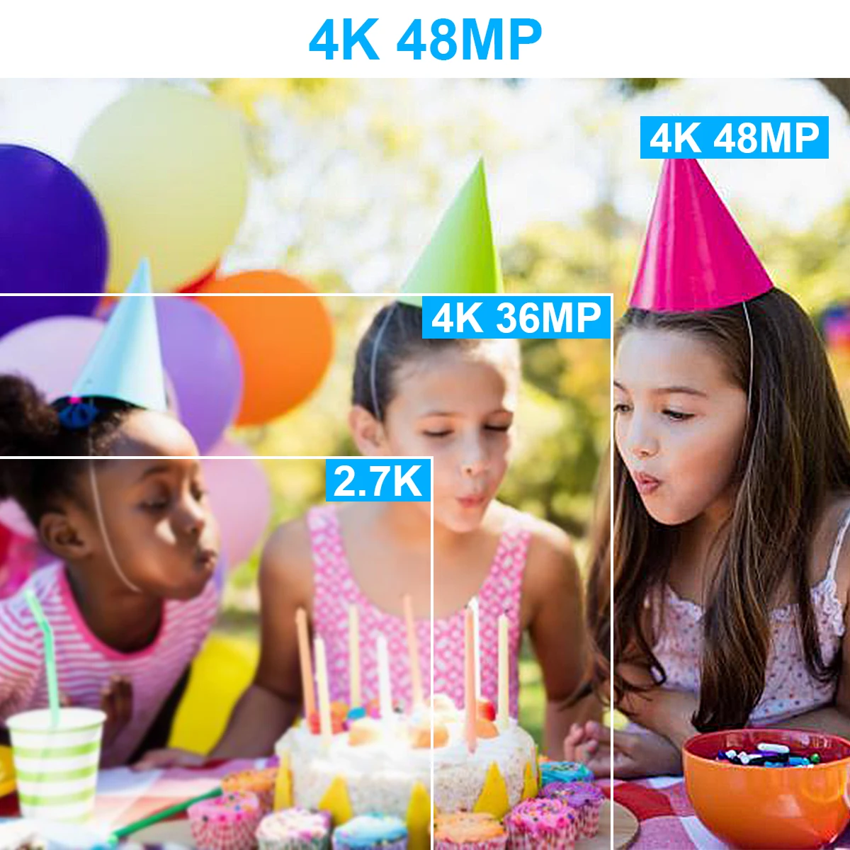 Photo: JPG, 3M/5/8/12M/20M/24M/30M/48M ResolutionVideo: MP4, 4K_3840X2160 (30FPS), 2.7K_2688X1520 (30FPS), FHD_1920X1080(60FPS),FHD_1920X1080(30FPS),HD_1280x720(120/60/30FPS)