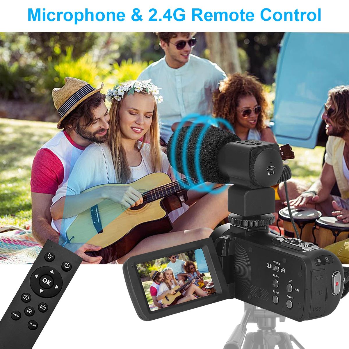 Zoom: 18X Digital ZoomSupport WIFI, External MIC, Remote ControlWhite Balance: Automatic/Sunny/Cloudy/Incandescence/Fluorescence