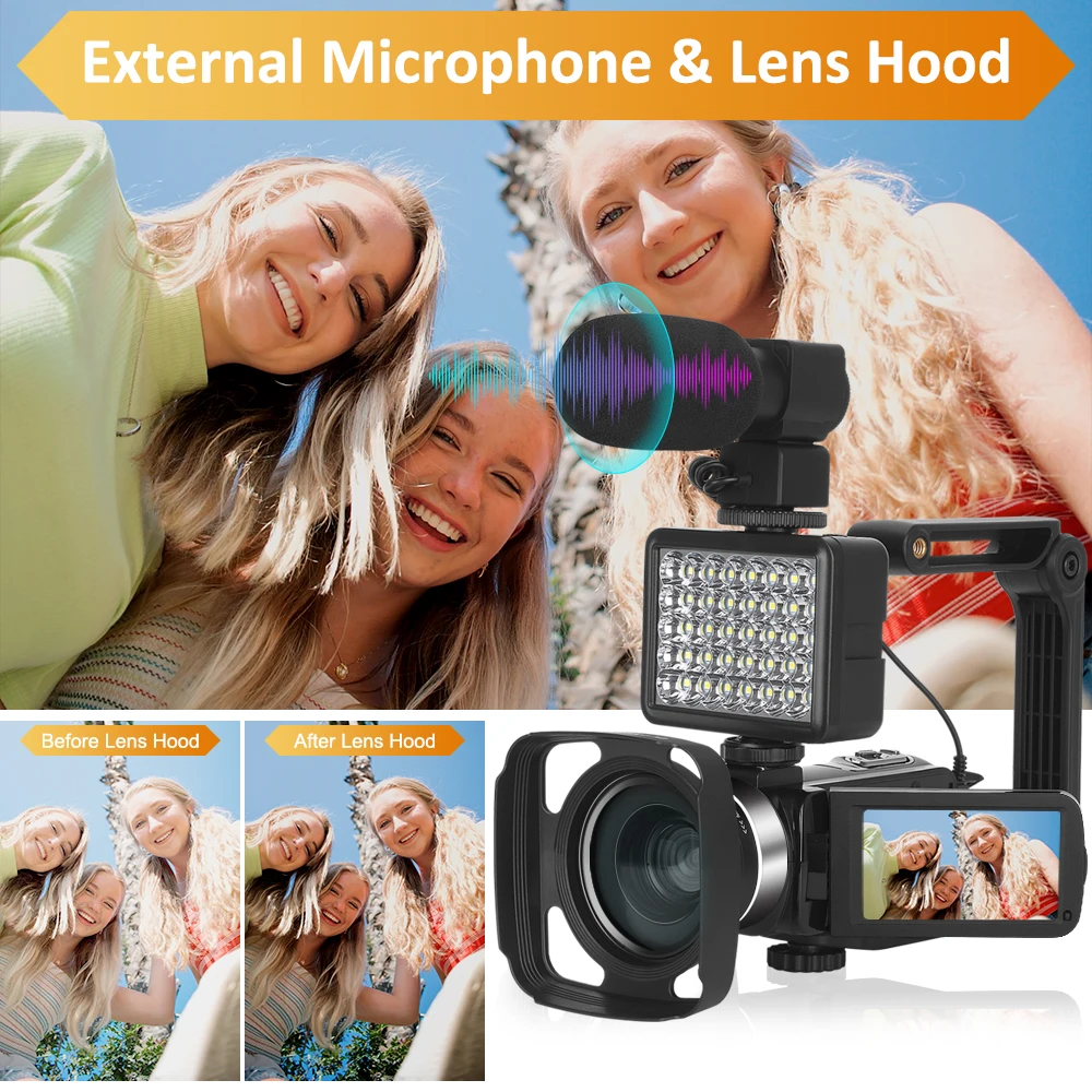 Full 4K Camcorder 18X 48MP Digital Camera Livestream Webcam UHD Vlog Video Recorder Wide Angel Macro Lens Photography Cameras