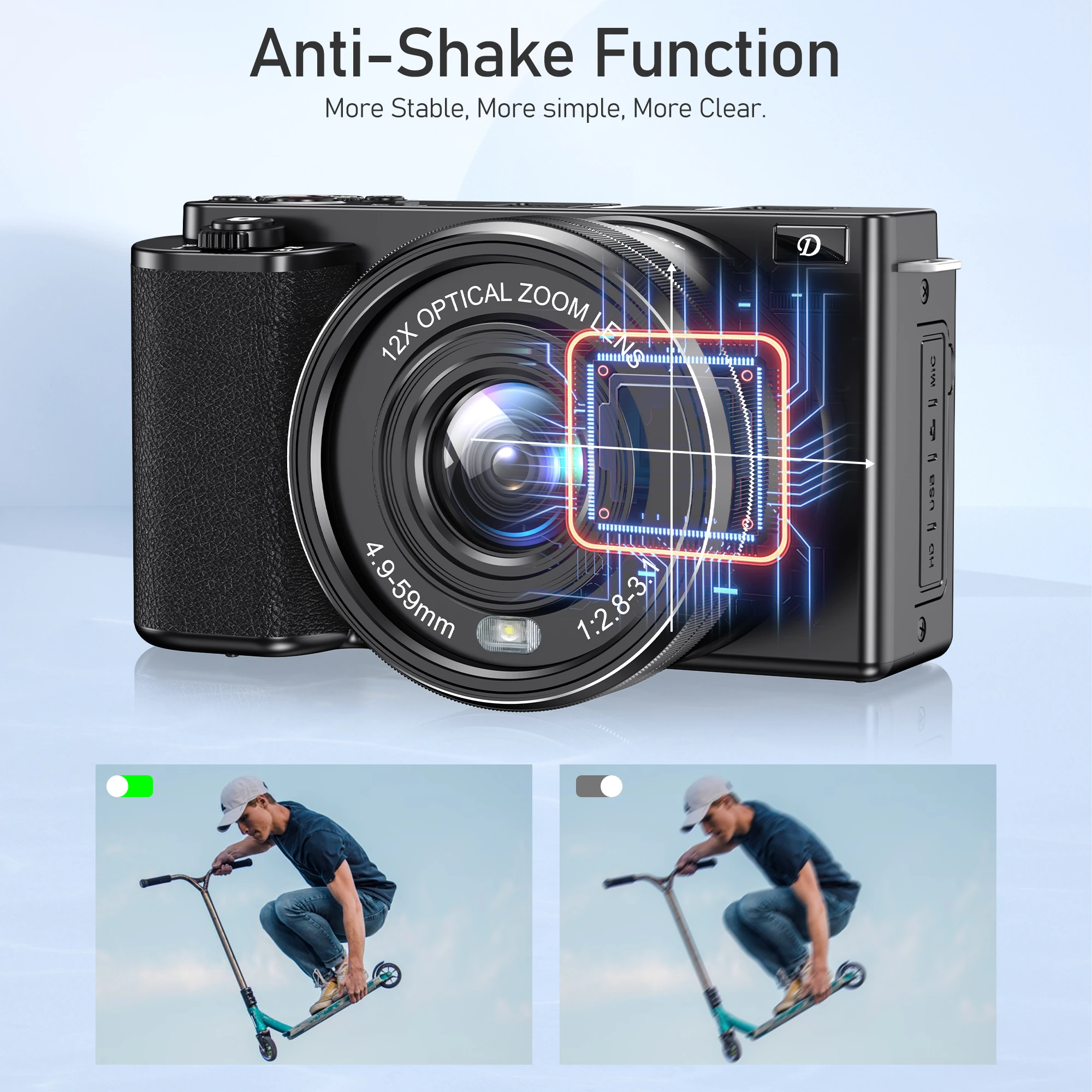 Komery 12X Optical Zoom SLR DSLR Camera 4K 64MP HD Digital Cameras For Photography Auto Focus WiFi Video Vlog Webcam Camcorder