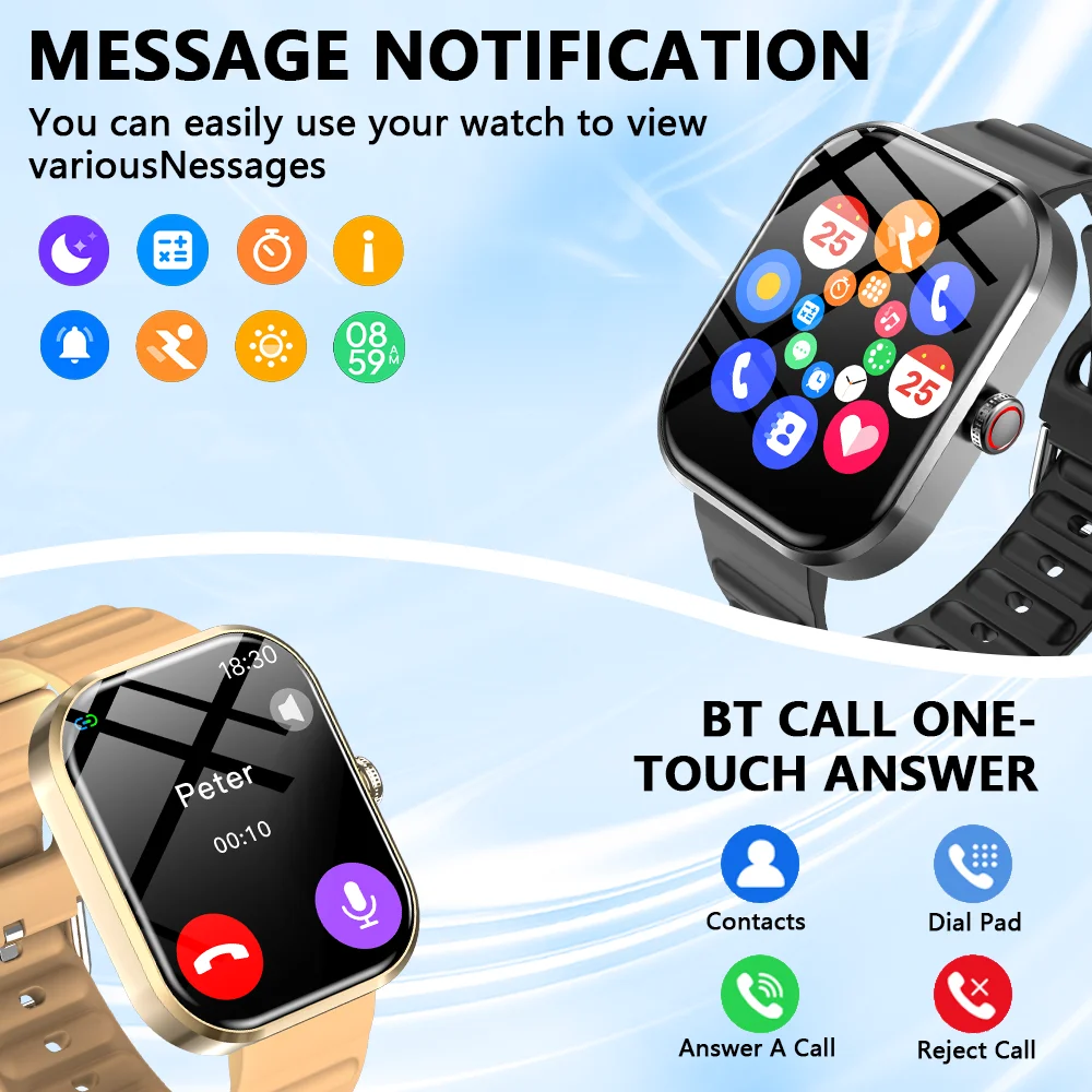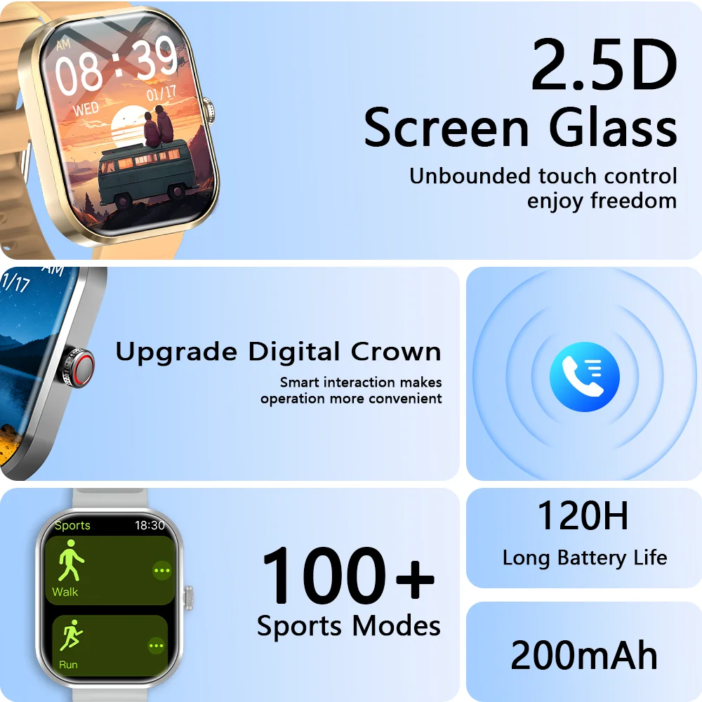 Bluetooth Calls / Make/Answer Calls / Incoming Call Reminder / Smart Message Notification / One-tap Connection Prompt / Voice Assistant / Bluetooth 5.4 / Raise Your Hand to Wake the Screen / Multiple workout modes / Calorie monitoring / Pedometer / Goal-achieved Reminder / Workout Recording / Sleep Screen Pointer/Dynamic Island.