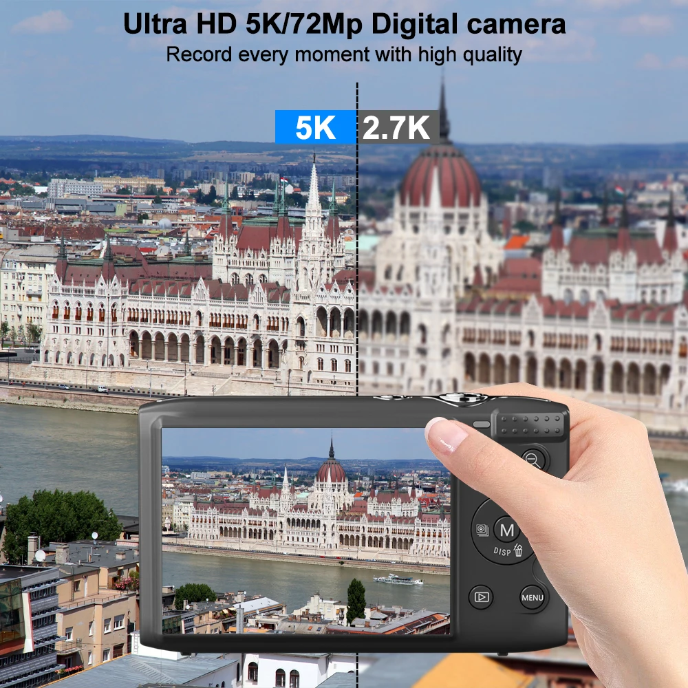 2.Wireless Connectivity & Creative Shooting: Featuring built-in Wi-Fi, simply scan to connect the vlogging camera to your phone for real-time preview, remote control shooting, or instantly share photos/videos on social platforms. The upgraded 13MP CMOS sensor supports 5K@15FPS video and 72MP high-res photos.