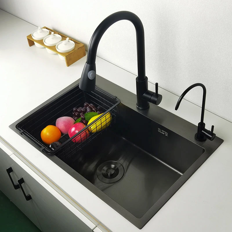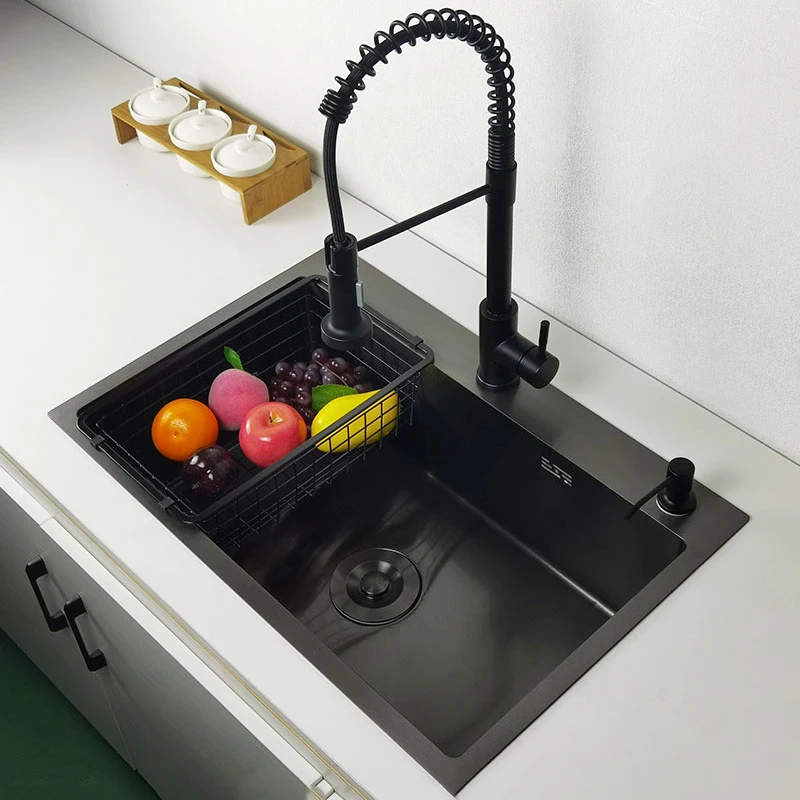 matte black kitchen sink above counter or udermount vegetable washing basin sinks dark grey stainless steel seamless welding pia