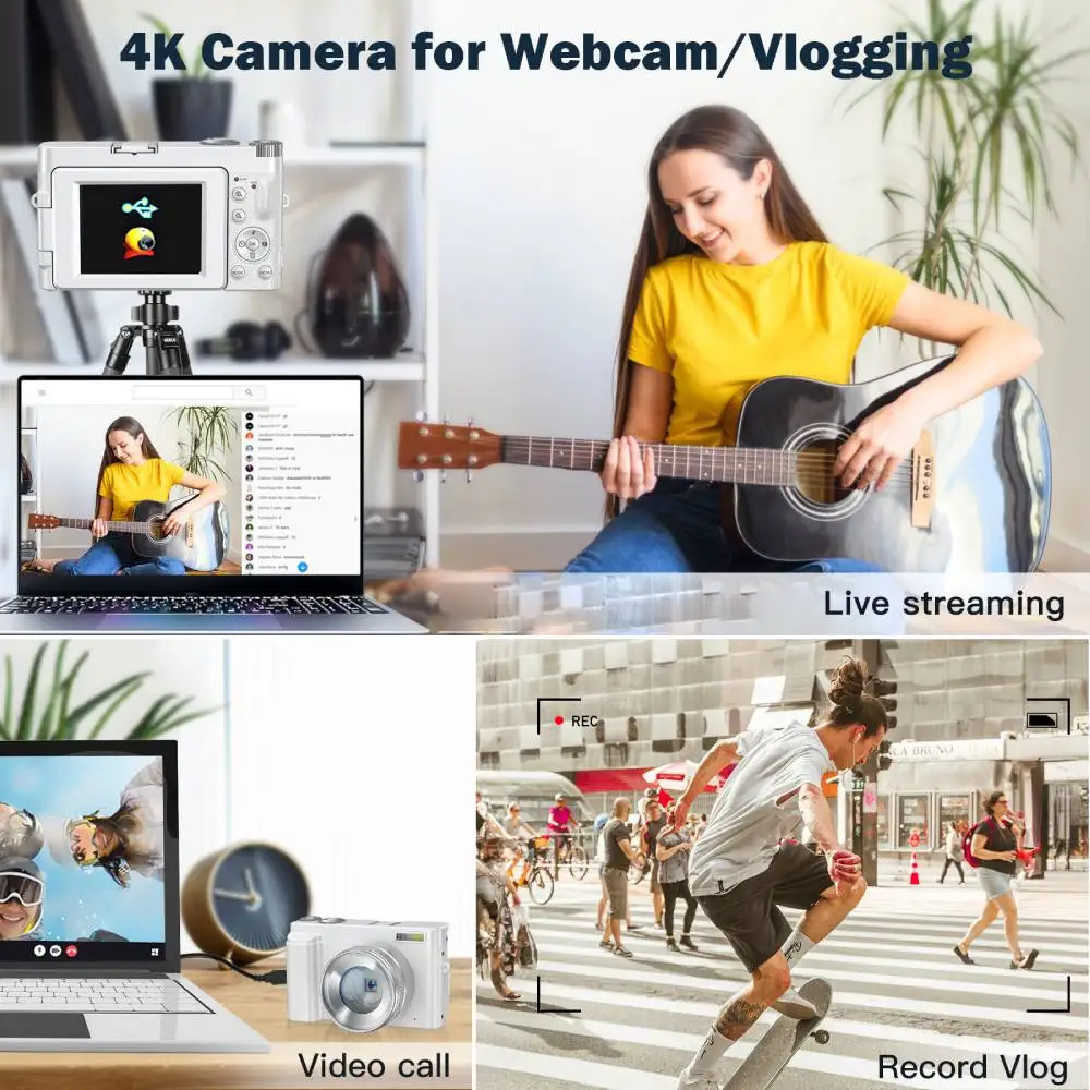 4K SUPER HD VIDEO CREATION -The 4K digital camera Gourmet Shopvers a high bit rate of 30FPS without missing all details, video camera’s pause helps save editing time and memory, and time-lapse and slow-motion features create the creativity you want! In addition, the vlogging camera for Video Platform can as a webcam, letting you easily do live streaming or video calls on social media.