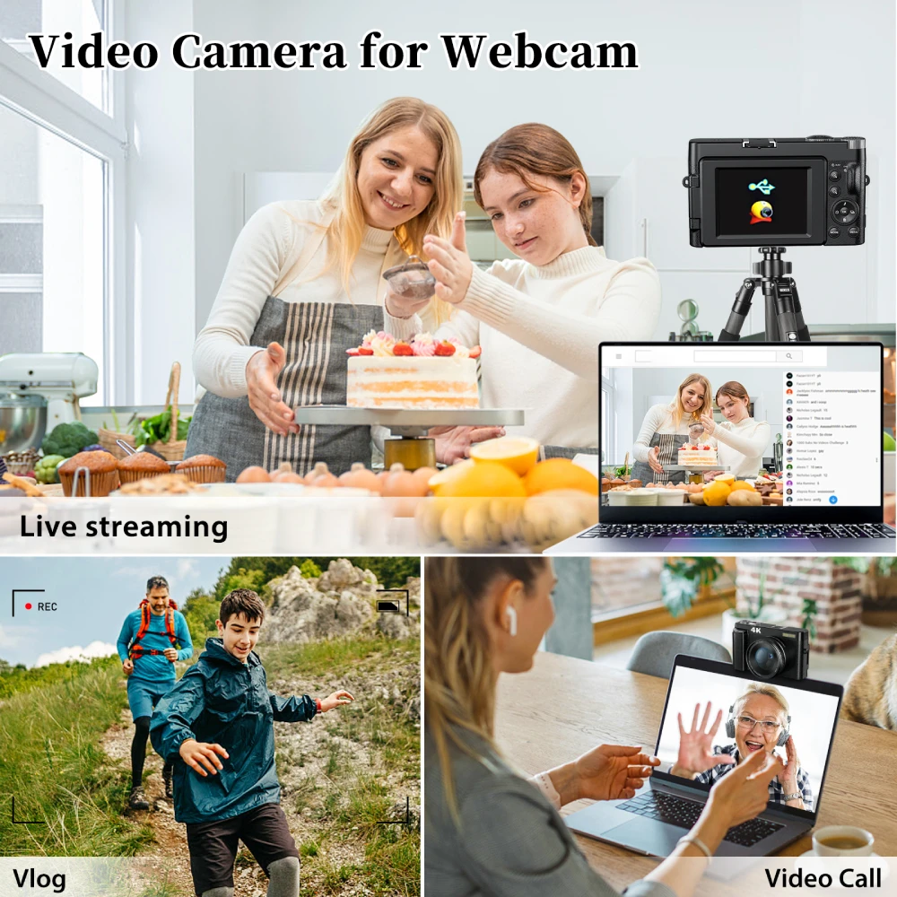 4K SUPER HD VIDEO CREATION – The 4K digital camera delivers a high bit rate of 30FPS without missing all details, video camera’s pause helps save editing time and memory, and time-lapse and slow-motion features create the creativity you want! In addition, the vlogging camera can be used as a webcam, letting you easily do live streaming or video calls on social media.