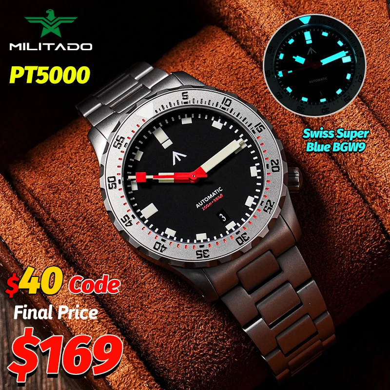 Militado New ML20 Automatic Mechanical Wristwatch PT5000 Sapphire 200M Waterproof Stainless Steel Bracelet 39Mm Luxury Watch Man