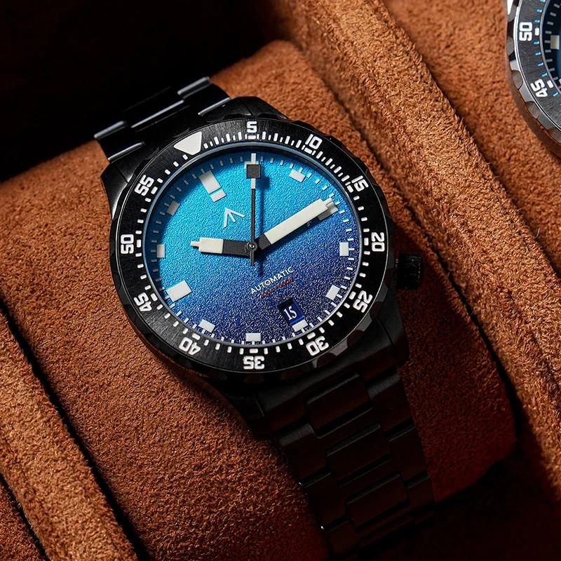 The MILITADO ML20 is inspired by the classic German diving watch, blending modern craftsmanship with the spirit of vintage tool watches, presenting a sturdy, reliable, and highly textured mechanical diving watch. The case is made of imported 316L stainless steel material, which has been sandblasted and black PVD plated, and coated with anti fingerprint oil, providing a delicate touch and long-lasting wear resistance.