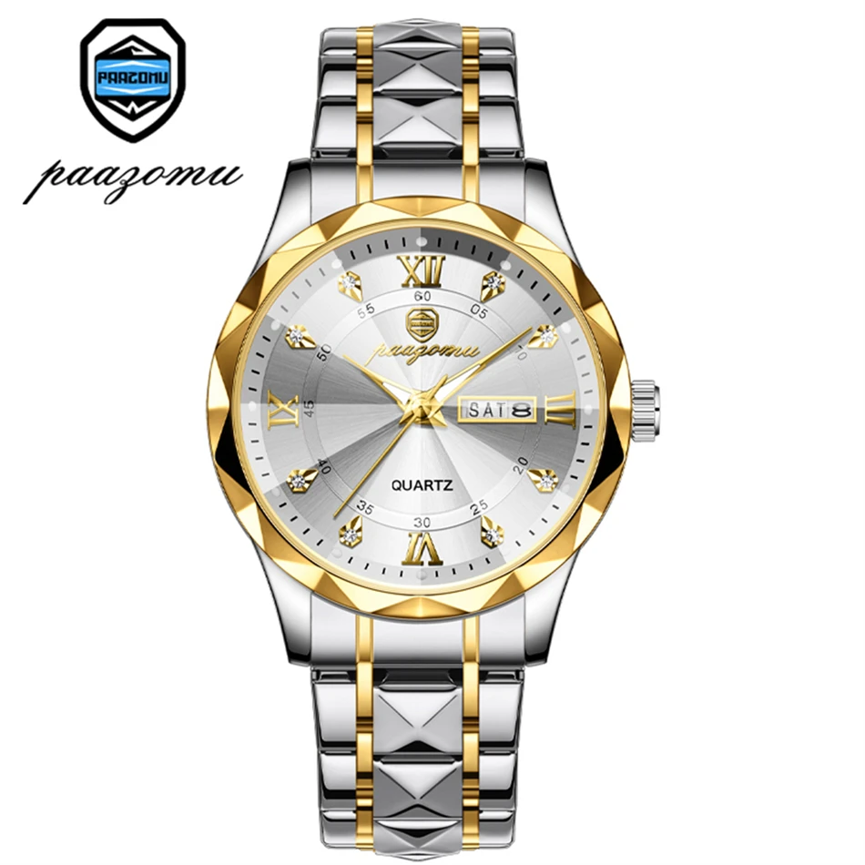 PAAZOMU Luxury Men Quartz Watch Waterproof Date Week Luminous Wristwatch Stainless Steel Men’s Watches Male Clock Sports Reloj