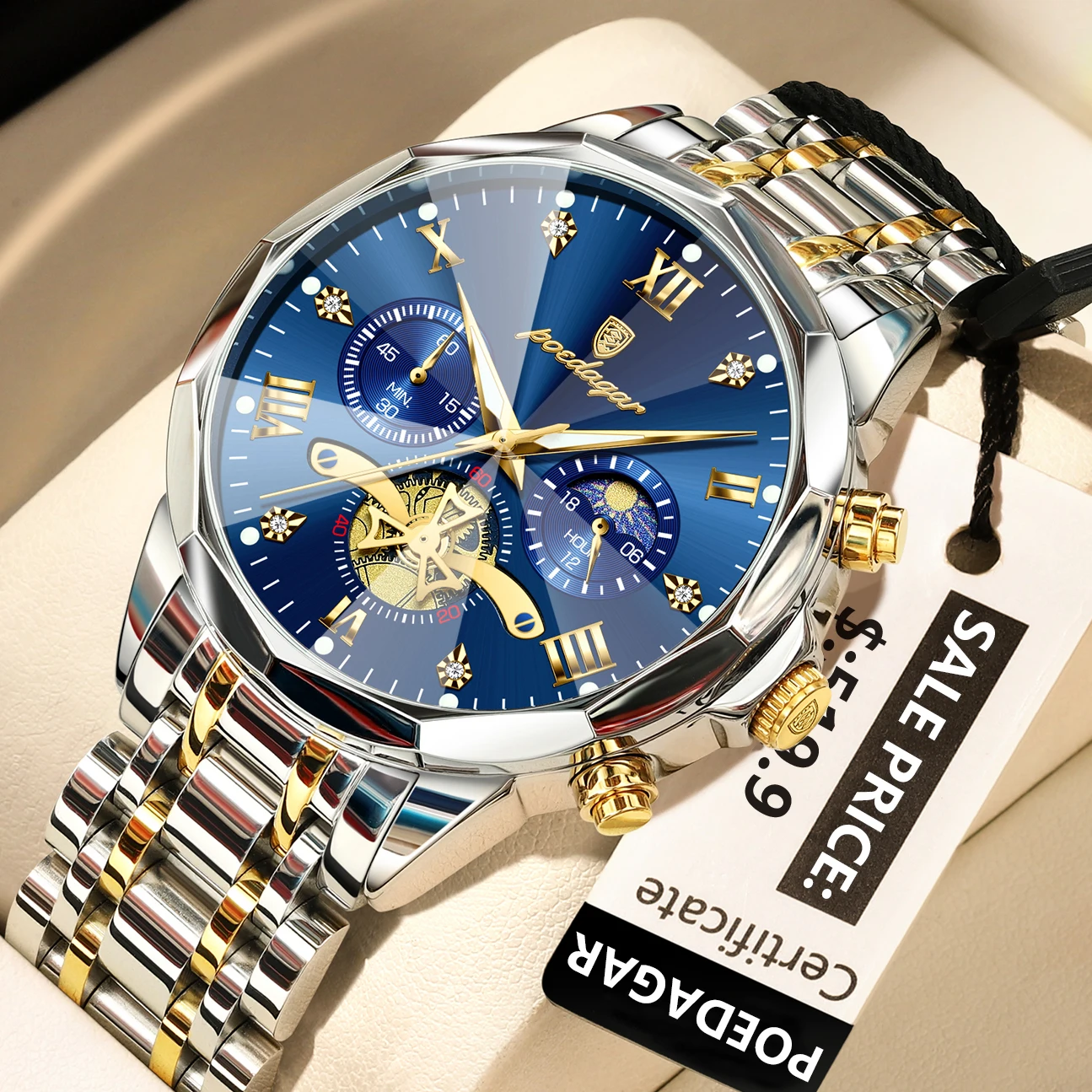 POEDAGAR Luxury Men Watch Top Original Waterproof Luminous Chronograph Man Wristwatch Stainless Steel Quartz Men’s Watches Reloj