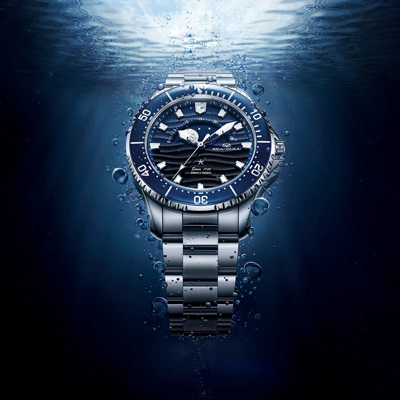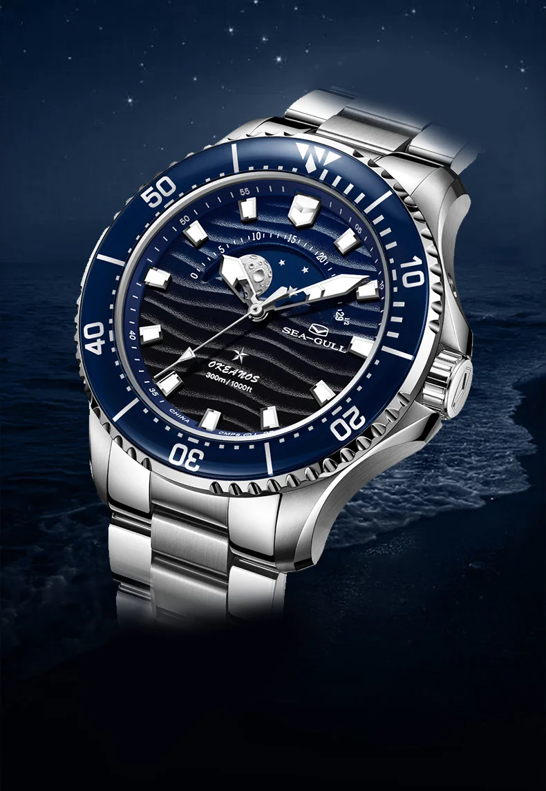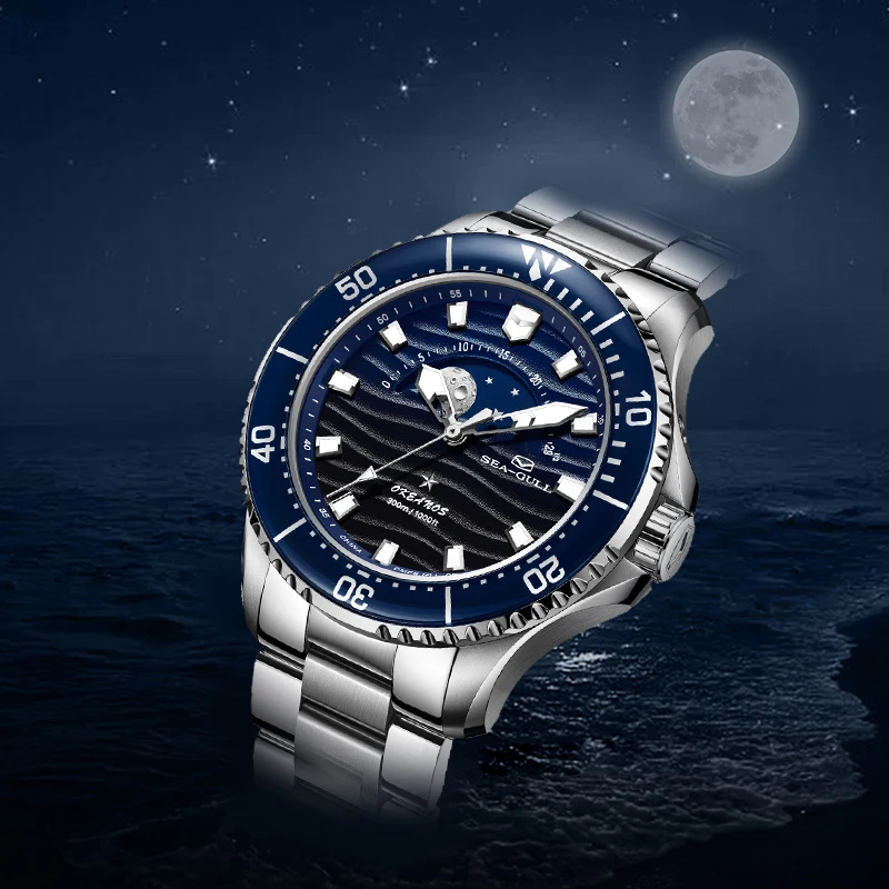 Seagull 43.5mm Dividing Watch 300M Waterproof Automatic Mechanical Wristwatch Moon Phase Luminescent Men Watches 1215
