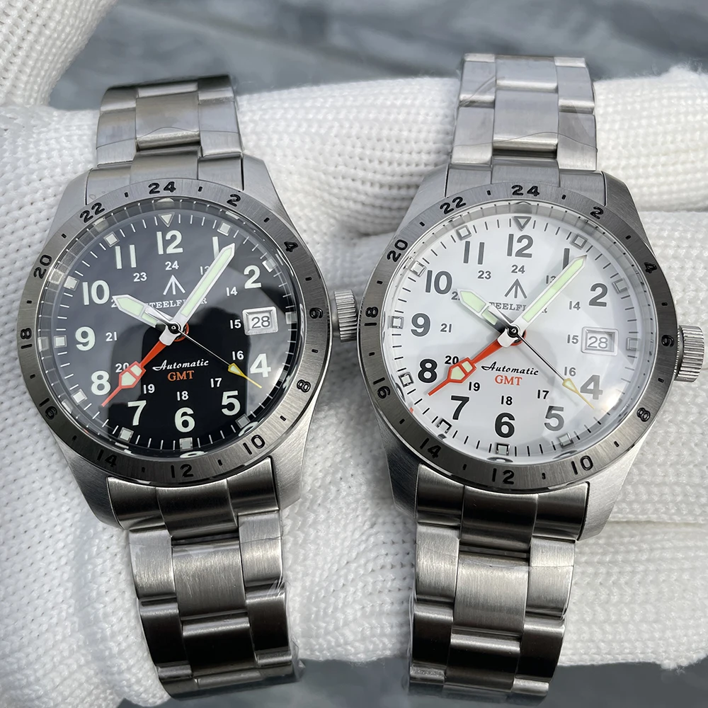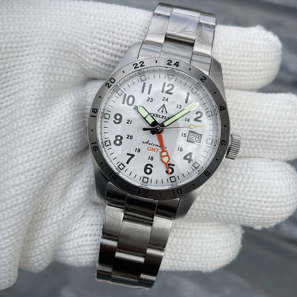 Movement features: central GMT pointer, 3 pins/calendar, frequency 21600 times per hour (3Hz), stop second device, two-way automatic winding, 24 stone, 41 hours of energy storage.